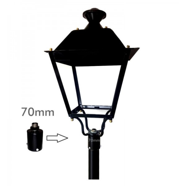 Con este soporte universal podrás adaptar las FAROLAS led a tu instalación. Adaptador de racor y tuerca, diámetro exterior de tubo de acero de 70 mm. Hueco de interior de 64mm.