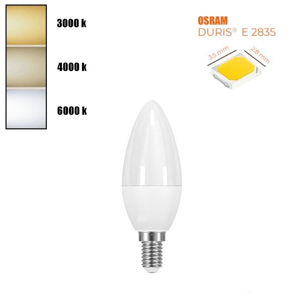 Bombilla LED Vela 6W E14 C37 180º - OSRAM CHIP DURIS E 2835