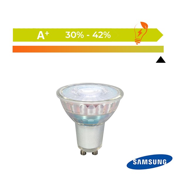 Nuestra Dicroica LED GU10 de 6W SAMSUNG es de alta calidad y está especialmente diseñada para uso intensivo profesional. El material con el que está fabricado es Cristal.
