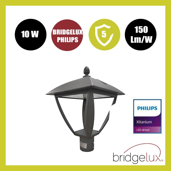 La farola LED NEW VILLA PHILIPS DRIVER ofrece un encendido instantáneo y gran potencia, siendo la sustituta ideal para las antiguas farolas de mercurio, mejorando la calidad de la luz y reduciendo notablemente su consumo energético. La farola exterior dispone de diodo SMD 5050 BRIDGELUX.