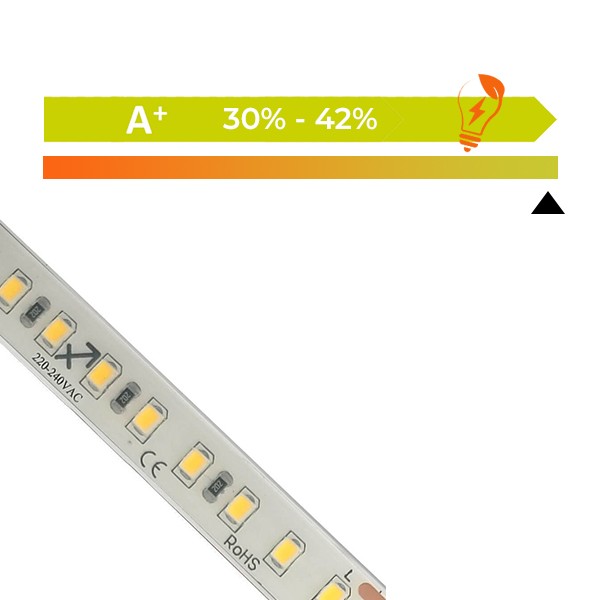 Tira led PROFESIONAL 14W por metro, de 220V con una longitud 20 metros. Diseñada para su colocación en interior. Perfecta para ILUMINAR todo tipo de espacios. NO requiere de fuente de alimentación y es conveniente instalarla sobre un perfil de aluminio para conseguir una buena disipación del calor.