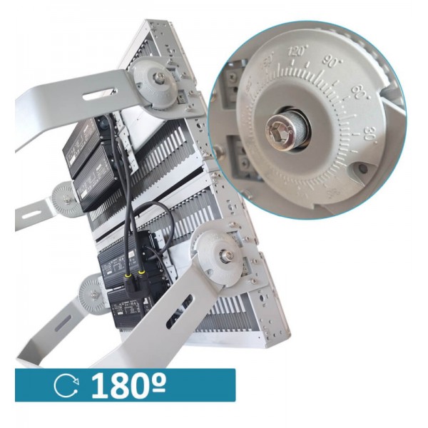 Las especificaciones técnicas de este tipo de Proyector LED de 1200W (300W cada módulo) lo convierten en foco capaz de iluminar de forma eficaz cualquier espacio a grandes distancias sin reducir su luminosidad.