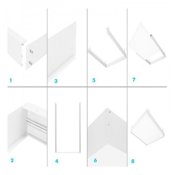 Ce kit de surface se compose de 4 pièces d'aluminium de haute qualité, de 7 centimètres de haut qui mettent en valeur le panneau en le transformant en un plafond de surface, qui peut accueillir le panneau LED, le driver, et le câblage à l'intérieur pour le fixer confortablement dans toute pièce ou pièce, sans avoir à renoncer à un éclairage moderne et très faible consommation.