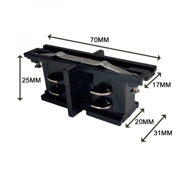 Joint en I DROIT pour rail TRIPHASÉ, disponible en noir et blanc. Il est composé de matériaux très résistants et grands conducteurs d’électricité, comme l’aluminium et le thermoplastique ignifuge.