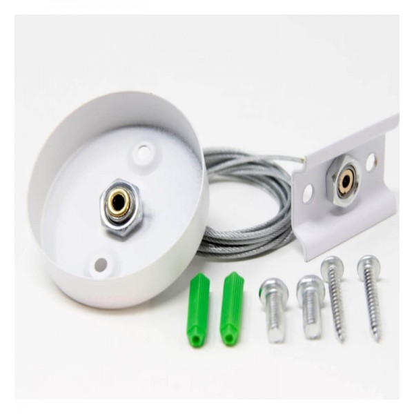 Kit de suspension composé d'un câble en acier de 1,05 mètre et de tous les accessoires nécessaires pour convertir le rail de surface monophasé en une installation suspendue de spots LED.