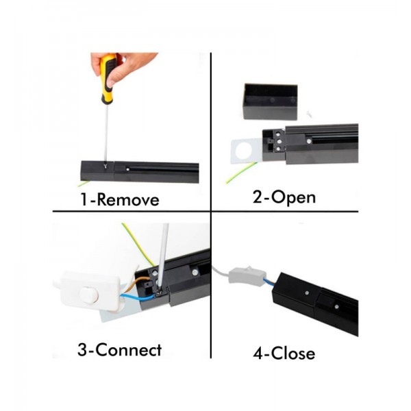 Comme cette rail est un circuit, cela signifie que lorsque la lumière est allumée, tous les projecteurs sont allumés directement sans possibilité de les régler. Ce produit est associé à nos spots LED Monophasé.