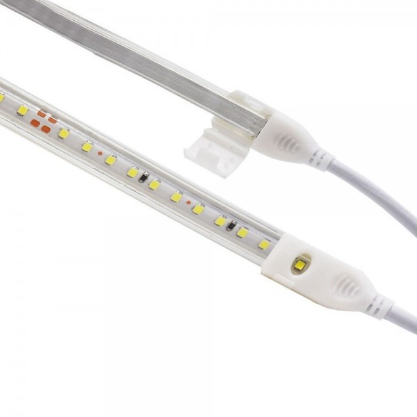 La Ruban LED à intensité variable IP65 220V AC 120LED/m comprend un câble redresseur et un embout de Ruban, des pièces qu'il est recommandé de protéger correctement pour ne pas compromettre la protection IP65. Dans un redresseur, nous pouvons connecter jusqu'à 1mètres de Ruban LED au maximum.