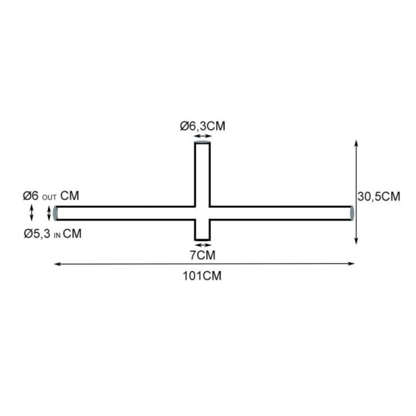 A cruzeta de 2 braços é feita de tubo de aço. Você tem a possibilidade de escolher a terminação em diferentes diâmetros (a pedido). Revestimento em pó de poliéster, eletro-estaticamente pulverizado e sublimado no forno. Resistente à corrosão. Sua cor padrão é o preto, mas tem a possibilidade depintá-lo em qualquer cor do gráfico RAL (a pedido)