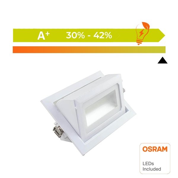 Spotlight OSRAM CHIP embutido SELECTABLE COLOR LED ajustável com 40W de potência. Feito de alumínio, destaca-se pelo seu design muito moderno devido à sua laca branca de alta qualidade. Com uma abertura de 120º tornam-na numa luminária ideal para todo o tipo de estabelecimentos comerciais.
