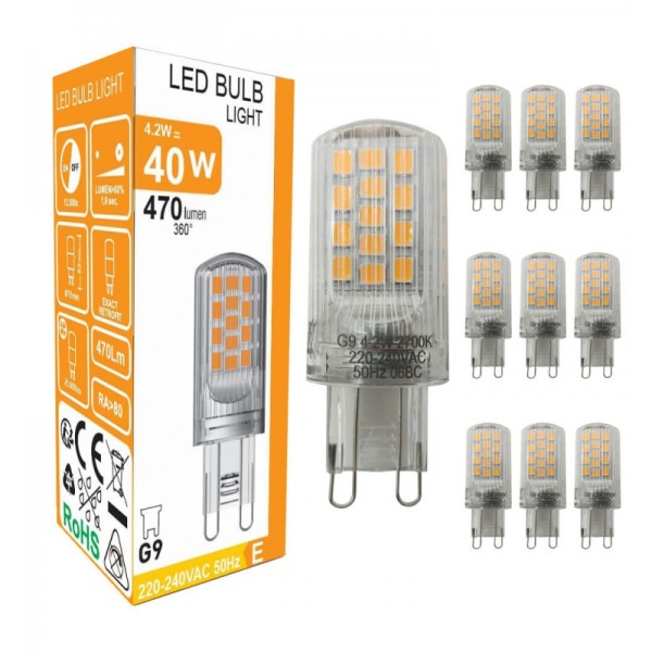 Lâmpada LED COB G9 com potência de 4,2W, com elevada eficiência energética que torna esta lâmpada um produto muito amigo do ambiente. Oferece início instantâneo e longa vida útil. Perfeito para substituir lâmpadas incandescentes antigas, conseguindo uma poupança energética de 80%.