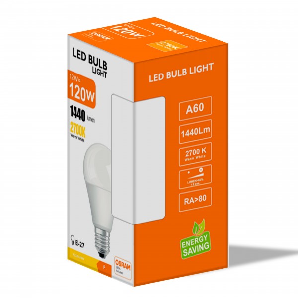 Seus diodos SMD 2835 High Brightness OSRAM Chip fornecidos são equivalentes ao brilho de uma lâmpada convencional de cerca de 105W. Desta forma, a economia de energia de 80% é alcançada. A luz exposta é distribuída em um ângulo de 180º e tem um índice de renderização de cores de +80, indicativo da qualidade da luz fornecida pela nossa lâmpada LED E27 A60 de 12W .