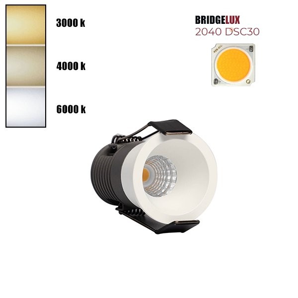 LED embutido 5W BRANCO Chip Bridgelux Circular - 40° - UGR11 CCT: COR SELECIONÁVEL: 3000K-4000K-6000K.